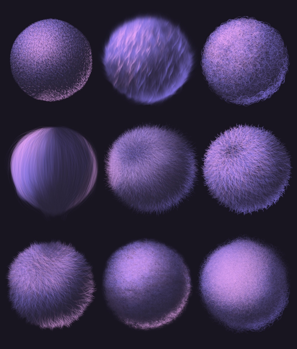 ✅ Fur & Hair Fill Brushes - 10 high-quality fur and hair fill brushes, perfect for achieving the desired silhouette for any illustration consisting of 10 different styles.